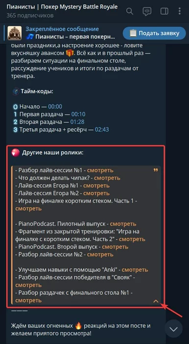 В нашем Telegram-канале уже собрана внушительная коллекция видео, посвящённых теме роялей — от подкастов до фрагментов лайв-сессий и разборов раздач в разных стадиях.