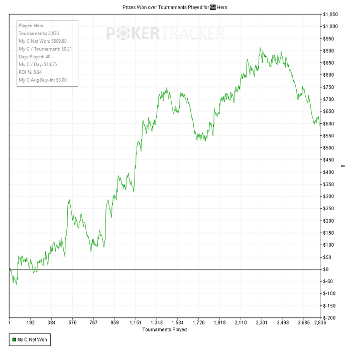 Длительные турнирные сессии по 6-12 часов = целый день за компом. В этом же виде покера можно подбирать время “мозаично”: час-два играешь, далее спокойной прогулкой до детского садика и обратно, снова короткая сессия в полтора часа, можно сходить в тренажёрку, а на ночь третья — финальная "битва".