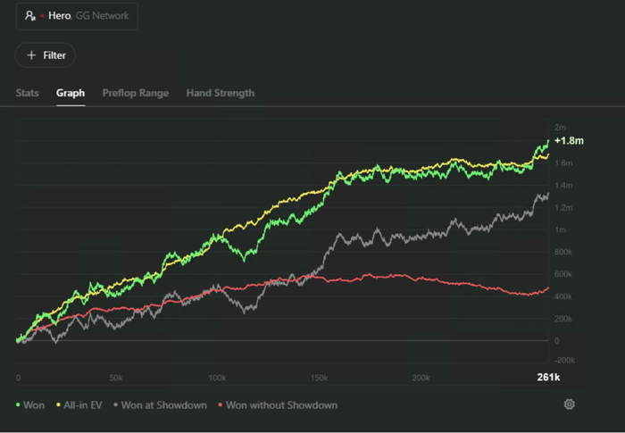 — Какие впечатления у тебя остались после первых тренировок? Оправдали они ожидания? 👤На собеседовании я спросил Артёма: «А сколько человек в группе?» Он ответил, что тренировки индивидуальные. Я уточнил: «Ну да, а человек-то сколько?» (С трудом прошёл тест на сообразительность 😄). Это стало для меня настоящим открытием — индивидуальные тренировки в команде! Первый тренер научил меня агрессии на префлопе, второй дал базу по постфлопу, а нынешний — Артём — помогает совмещать эксплойты и ГТО, при этом делает большой акцент на покерную логику. Именно благодаря ему я вышел на 25-й лимит. Мы с Артёмом отлично сработались, часто обсуждаем покер и мемы. И что самое забавное — после его тренировок у меня обычно самый сильный ран: однажды за 2,5 часа сделал +96 байинов!