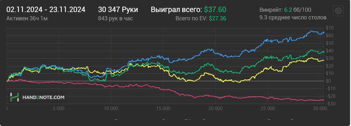 С покером дела обстоят медленно, но уверено. В целом отыграл уже свою месячную дистанцию.