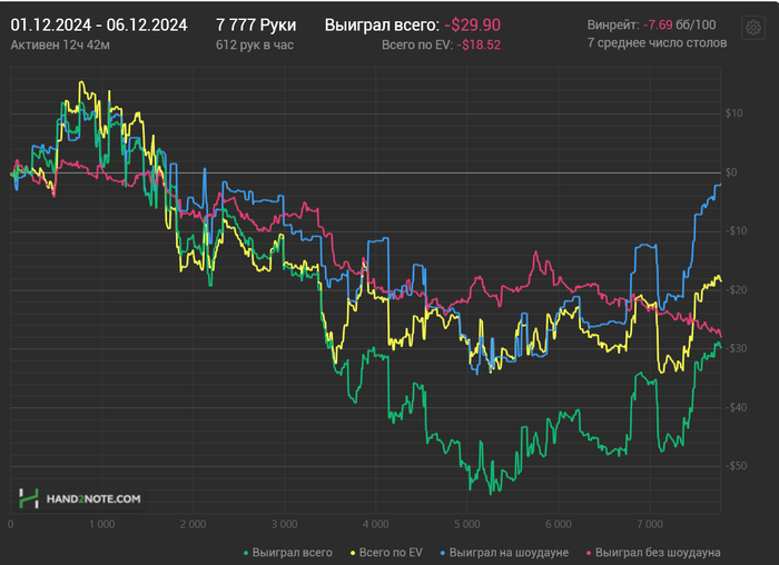 На это я потратил ровно 42 часа 35 минут сыграв 37 592 руки.