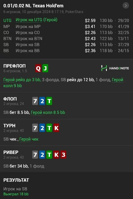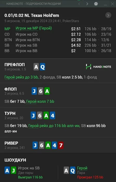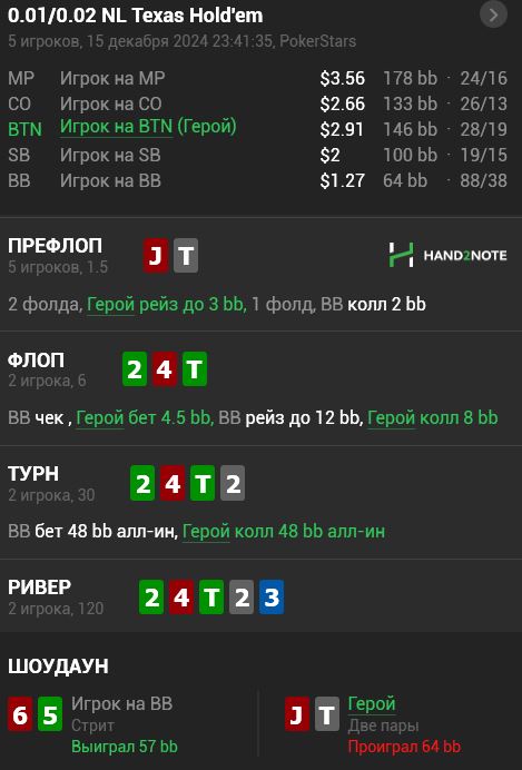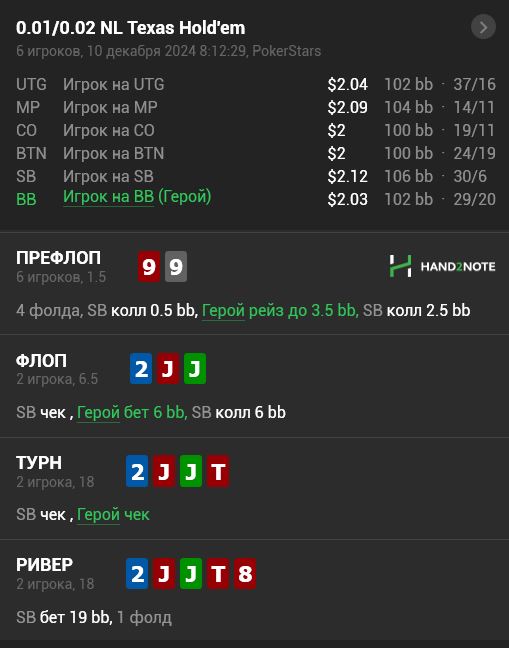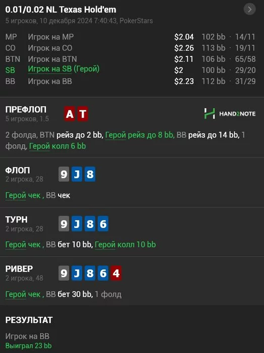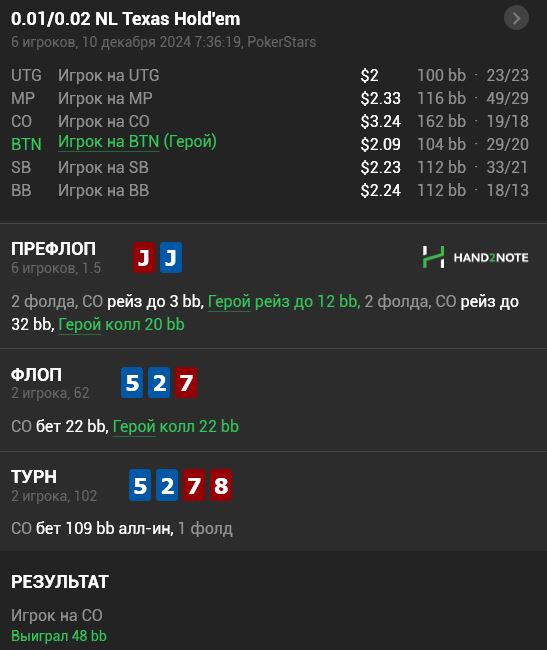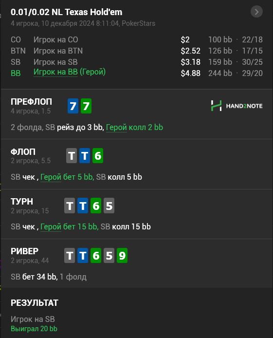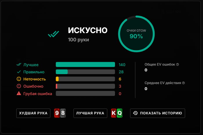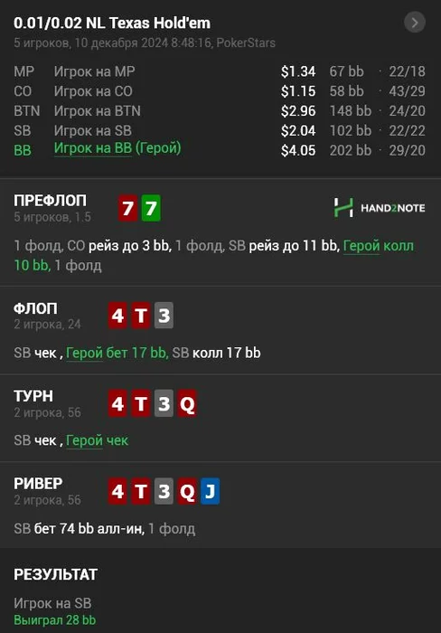 Пересматриваю раздачи и смотрю пошла тенденция , начал ловить свои карты за ставку 3/4 2/3 , пересматриваю не крупные банки где потом просто по недоезду сдался , и вчера вот прям много таких моментов было , отлично что я увидел данную тенденцию сегодня постараюсь такого не делать .