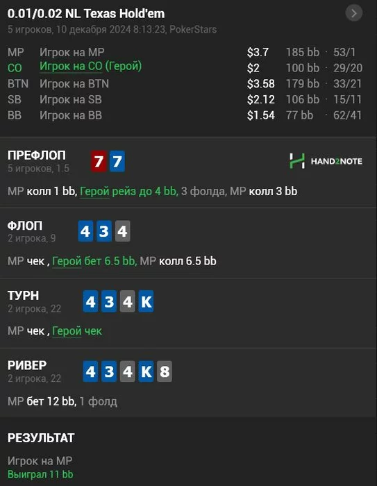 А вот в этой раздаче тот же фиш тут я уже откровенно злой пер на монетку наказать его . Не зашло. После этой раздачи я закончил сессию .