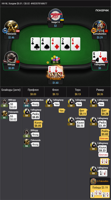 Пока рано судить конечно но тенденция мне не особо нравиться, сегодня прям хорошо заходили АА КК АК и как то всё мимо борда , либо просто скидывают , в общем скудный денек , но благо не много влил, скорее больше рейком отдал.