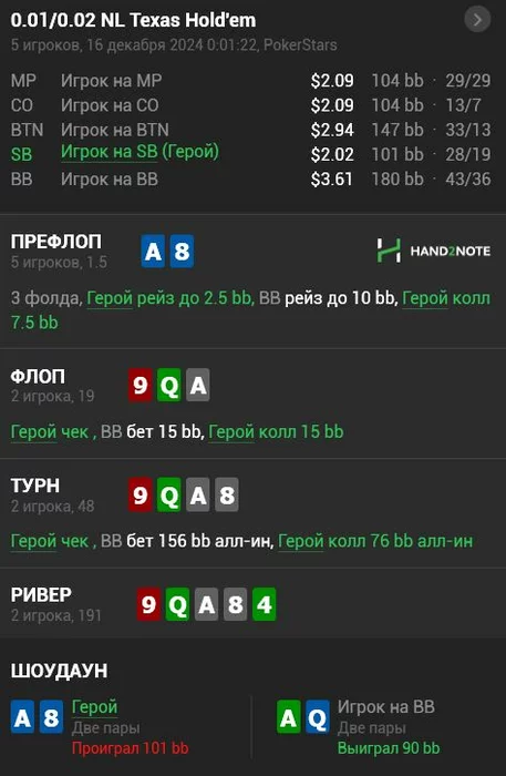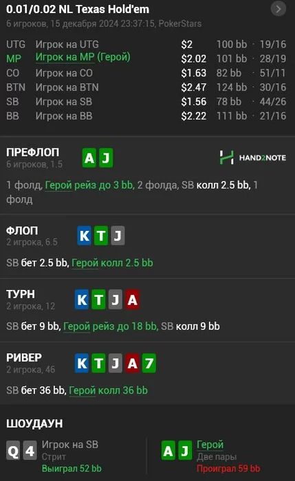 Тут как будто овер бет в протект от овер карт забрать здесь и сейчас выход туза не очень приятно ушел в чек по риверу маленькую в надежде на ШД