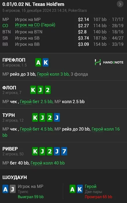 Здесь переиграл конечно АК согласен можно было поколить и по выходу флопа на агресию выкинуть сэкономил бы большую часть стэка.
