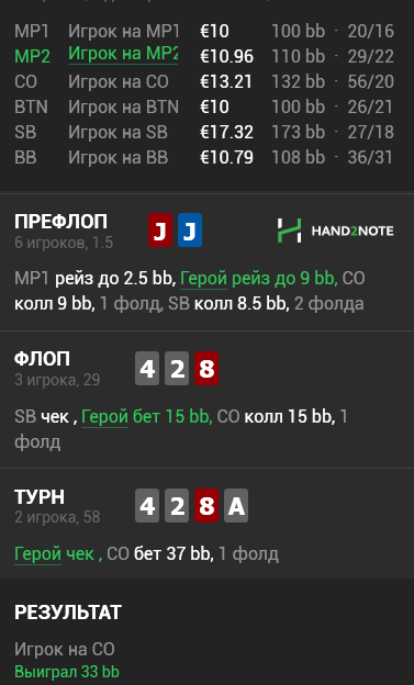 Против рега, который сидел достаточно спокойно. Палевный 4бет, есть ли смысл на префлопе выкидывать в этих позах?