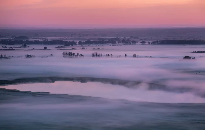 Когда наступает предрассветный час и ты уже на ногах, когда любуешься красотой природы и лишь в ожидании светового представления, и наконец , когда все это видишь - невозможно не в любиться в эту красоту! В такие туманы ты слышишь буквально за много километров, как птица машет крыльями. Деревья выстроились, как солдаты на плацу и как-будто шагают. Туман плывет, но скоро исчезнет. Как и дни, но будет снова завтра, и снова они начнут зарождаться, даря нам новые и философские рассуждения.