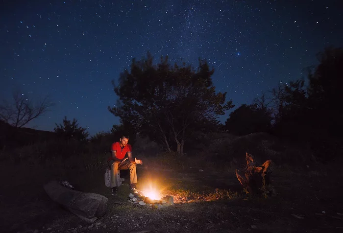 Под безмолвным покрывалом ночного неба, уединённый у мерцающего костра, я сижу в тишине, окутанный мягким светом пламени и звездной бездной. Глаза отражают искры огня и бескрайнюю глубину вселенной, а в сердце таится спокойствие и мечты о далёких мирах. В этот волшебный момент я являюсь частью природы — сильным, мудрым и свободным, словно сама ночь шепчет мне свои тайны. Я знаю в тишине и звёздном сиянии, скрыта истинная красота жизни.