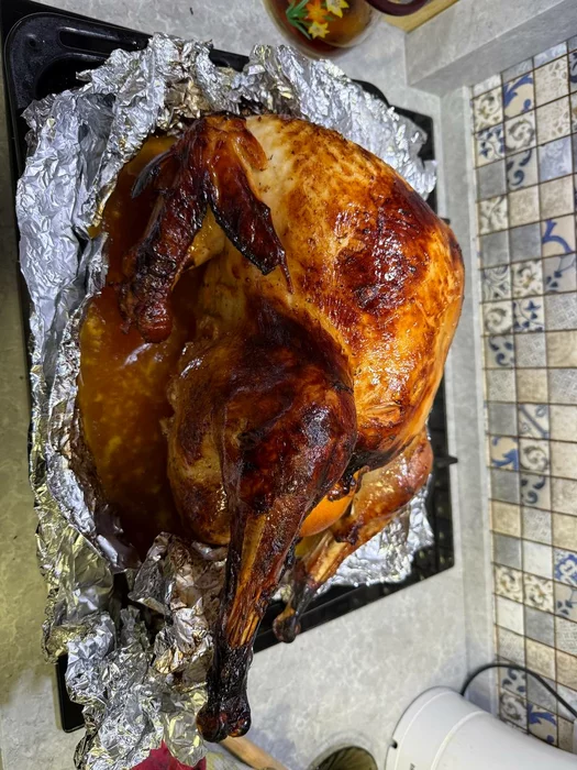 С новым 2025 годом, в Ташкенте на праздничный стол деверь приготовил в духовке индейку, целую на 8кг, готовилась 4 часа, получилось очень вкусно и сочно!!!