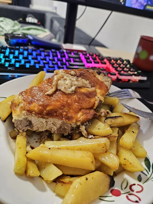 Взял свежайшую корейку запек её "по-французски" с обеих сторон соль и смесь перцев где есть сычуанский перец, пиздец как вкусно, картошку делал девушка, сказал обжарить на сале - збс, на апперетив и дайджестив 125г водочки, ледяной из морозилки.