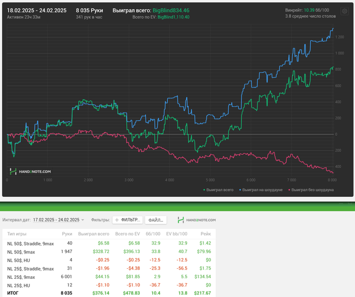 Были мысли вывести все под ноль и катать от бэкера. Раньше было предложение прям очень хорошее. Сейчас чуток поменялись условия и я пасанул. Нужно понимать что у бэкеров часто 1 плюсовый , перекрывает двух слабоминусовых + есть шанс быть кинутым и само собой это не благотворительность, нужно как-то на этом наживать. Например есть рег нл25-50 ласт 150к рук в 8бб\100. На нл100 дистанция +-30к в те же 8бб. Просит бэкинг на 50-100. Готов на долгосрок. Ну скажем пакет в 100к рук для начала. Какой процент считаете приемлемым с учетом оговоренной дистанции и результатов за последнее время?