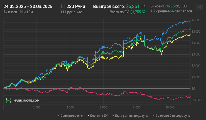 - 20 часов катки минимум. Приоритет не количество рук, а винрейт. Хороший селект, обдумывание каждой раздачи, максимальный эксплойт. Ни на что не отвлекаюсь, играю с максимальной концентрацией.