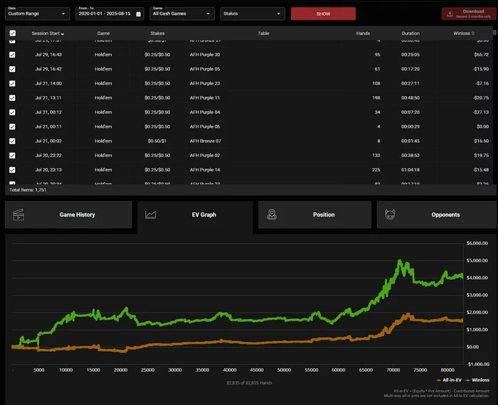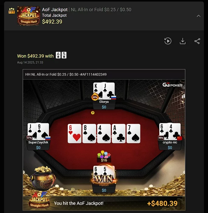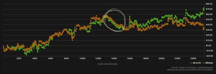 В конце жесткий разброс по EV не могла порадовать такая раздача