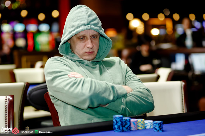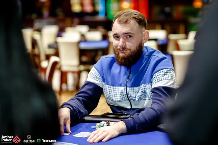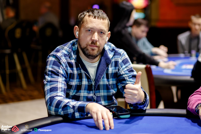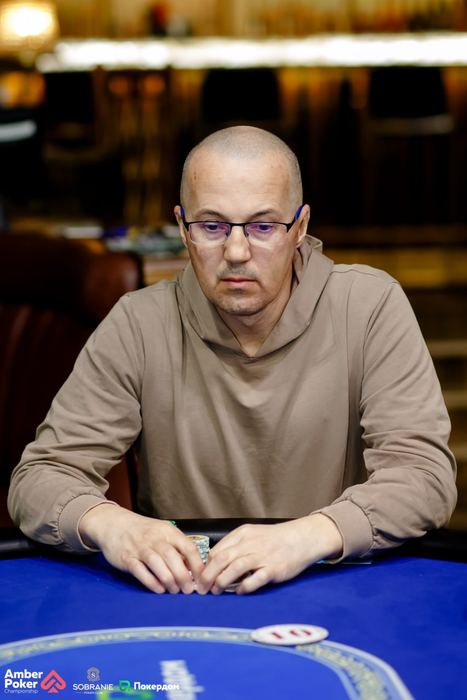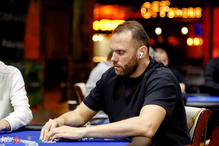 Денис Раков запрыгнул в турнир во время перерыва, сделав ре-энтри. Здесь идет веселая и непредсказуемая игра.