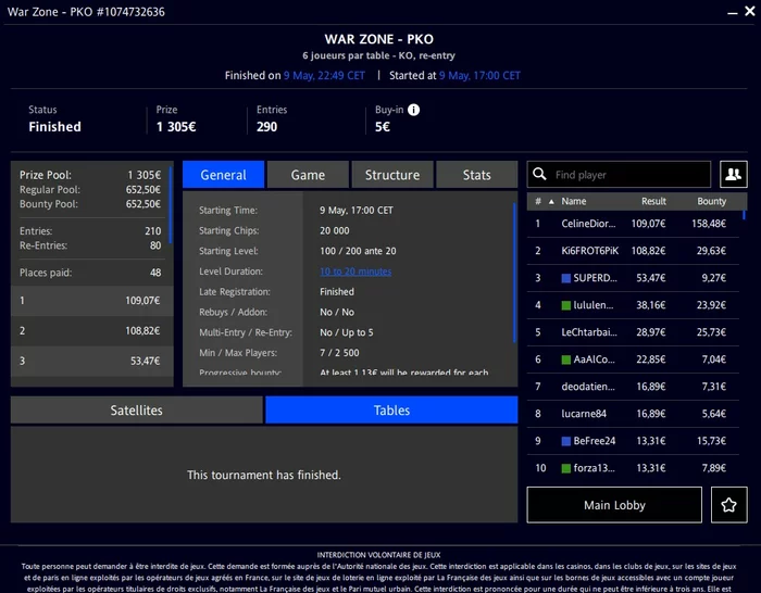 Я так понимаю, речь идёт не об обычном айпокере (общий мировой пул), а о французской резервации?