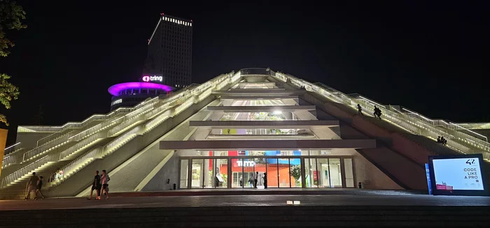 Низкoe тёмное здание - спортивная арена, где проходит серия.