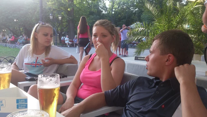 Вагон внезапно начинает нас поддерживать — реально весь вагон. Все говорят: "Ребята сидят спокойно, а вот она орёт". Мужик понял, что его армия — это 1,5 человека, и просто замолчал.