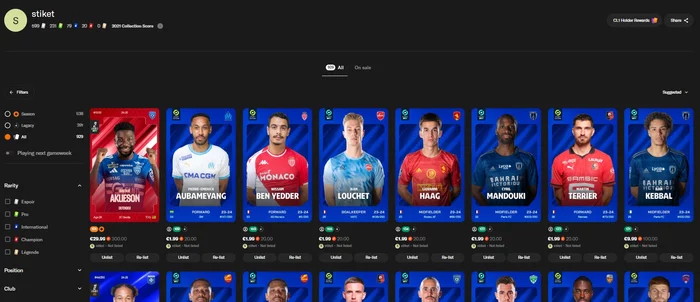 Coach: фэнтези-игра по французской лиге. Вывод средств невозможен, есть только депозиты. Мне удалось сделать x3 на старте и вывести прибыль ( около 300 баксов ). Сейчас у меня есть коллекция, которая по минимальным ценам оценивается в 300 долларов, но я попробую продать её за 150. Играть там мне особо не нравится — делаю всё быстро и без анализа. Периодически выигрываю монетки и открываю паки. Опять же, выводов нет, только частные продажи в обход платформы тем, кто играет по-фану.