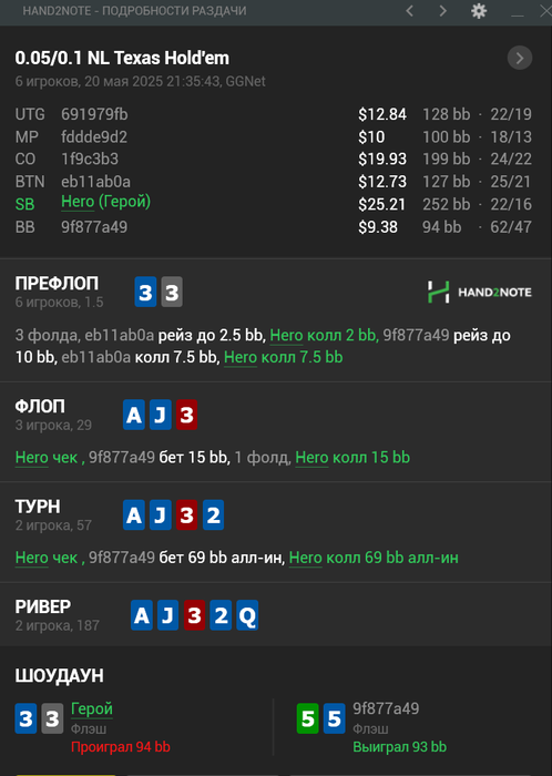 2. Bb vs sb. QQ пушатся/коллим? или это около нулевое или минусовое действие? Опп 25% 3бет. На 50 рук правда, но всё же не нит лютый.