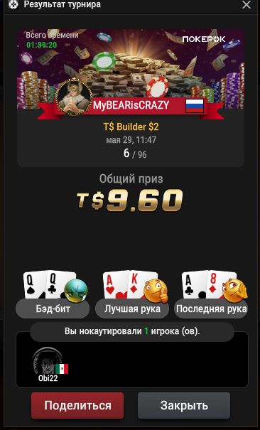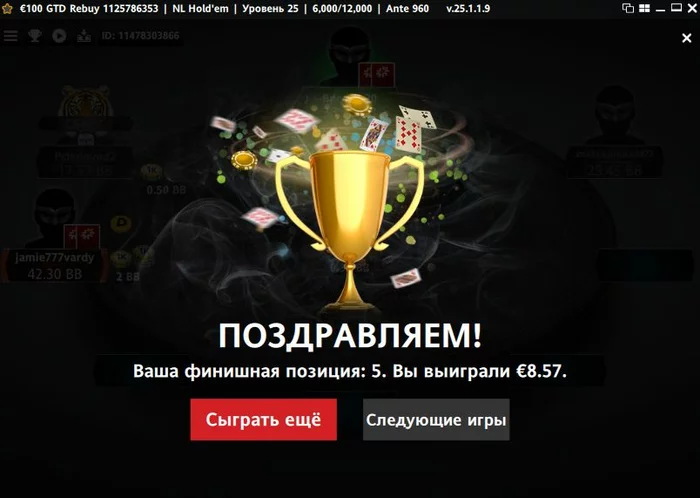 Запускал турниры и было сразу понятно долго я играть не смогу, я ещё не восстановился. Короткая сессия на 6 турниров, 2 финалки. Отлично!