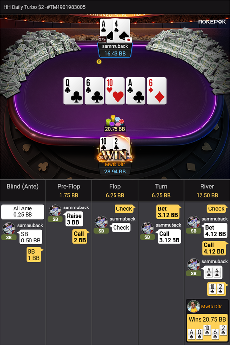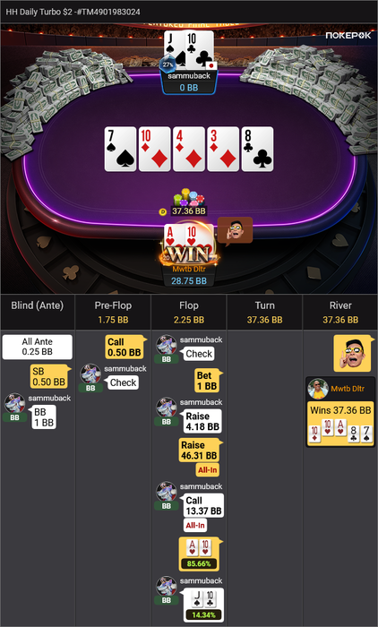 Сумма хоть и не большая, но такие победы дают уверенность, что не зря трачу время. Что и на Покерке (как бы его ни хуесосили за аркадные ГСЧ) можно микросы бить.