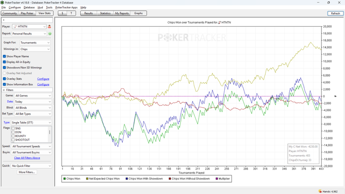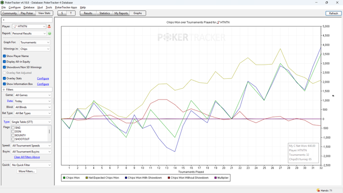 Поймал какой то сумасшедший перебор, переезжал абсолютно всех, в то же время сдавали хорошо ,плюс реги зачастую творили какую то дичь) Играл, если честно, относительно паршиво, больше на кураже все шло. Я как то научился справляться с эмоциями во время даунстриков, но во время апстриков они периодически берут надо мной верх)