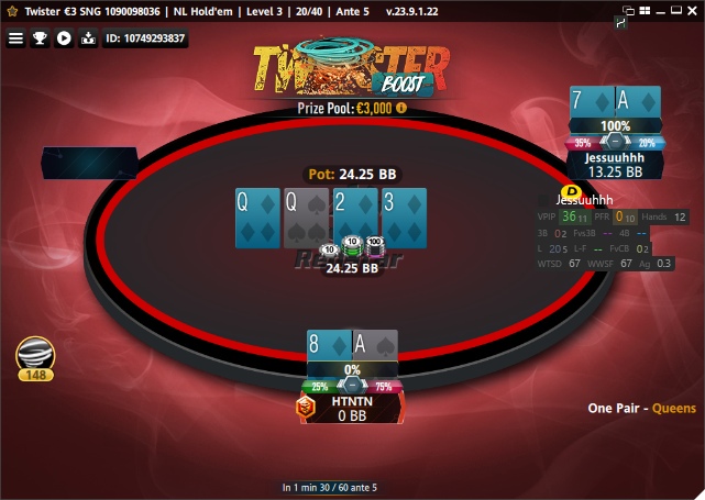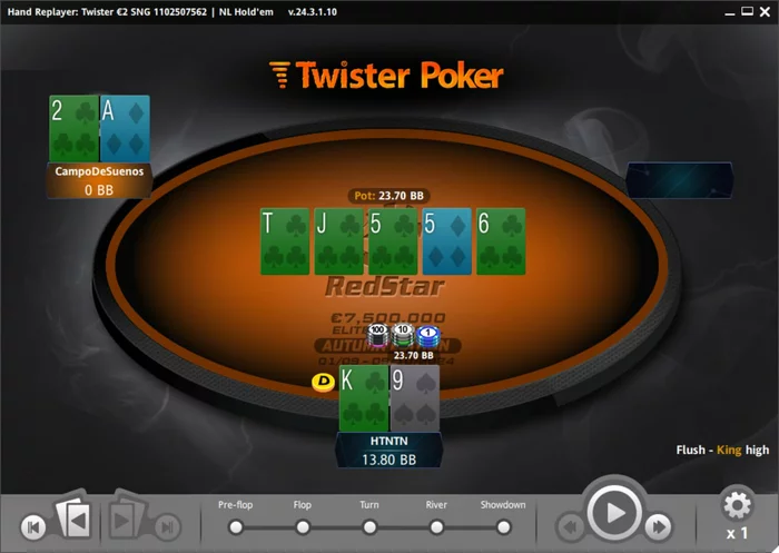 Практически весь 2023 год я прожил в Казахстане (Астане) и катал там на старзах спин н го Макс. Вернувшись в РФ я понял, что нужно учиться играть нормальные спины) Весь январь я отыграл на гг единички, гриндил их на лидерборд и постоянно занимал в нем 3-5 место. Как итог, за месяц вышло 400$, что меня совсем не устроило))) На тройки повышаться не очень хотелось, там лидерборд платил практически столько же, поэтому я решил попробовать поиграть на редстаре двойки. За февраль у меня вышло чипев 31, я тогда не понимал, что это значит и, из за того что мне тогда нереально сыпало (вышло больше 1000$) я решил, что я готов к пятеркам))))) Там мне быстро показали мое место, я отыграл 4к спинов на чипев 12, благо опять же повезло и я как то отыграл в ноль) Потом потихоньку я улучшал свой скилл просмотром каких то видосов и стримов, чипев к началу мая стабилизировалась на отметке 36-38 на двойках и я увидел, что ввели новый лимит - тройки) Играл я их около 3 недель, чипев было плохое, около 20, но самое интересное, что мне упала там главка, которую я очень обидно проиграл A8o vs A7s. Вот тогда меня накрыло неслабо, потому что это была первая главка и было не очень понятно, когда упадет следующая)