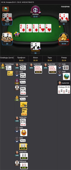 sable, smola777, да ребят, не знаю почему я подумал что заколить на флопе было хорошей идеей. Нужно было порейзить его на флопе, так как там очевидная попытка разогнать банк к доехавшему флешу на остальных досках, короче как всегда ветер в голове( Спасибо за комментарии)