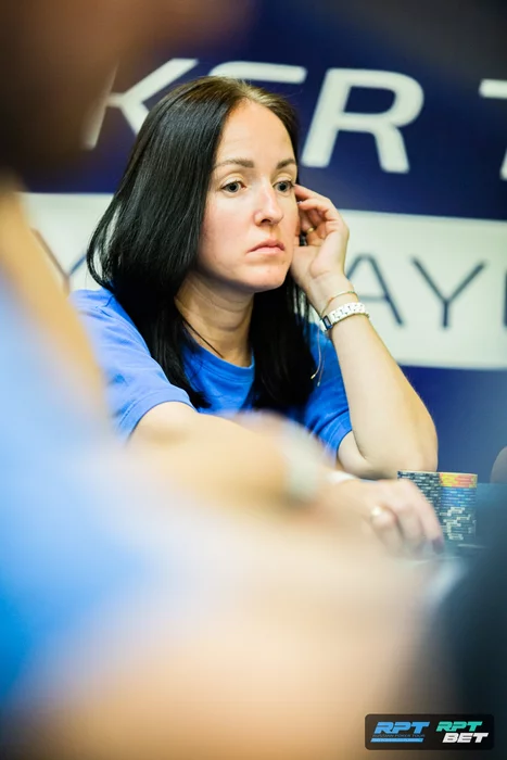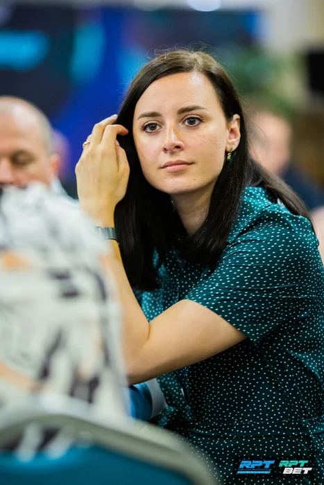 Наловила даму и смогла крутануться до 6бб. Сергей Лысин получил стек чуть меньше среднего, а Виталия Болокана осталось 35к.