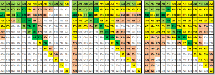 Что характерно, по данным чартам AQo трибетятся только в особых случаях, а АJo вообще только коллируются.