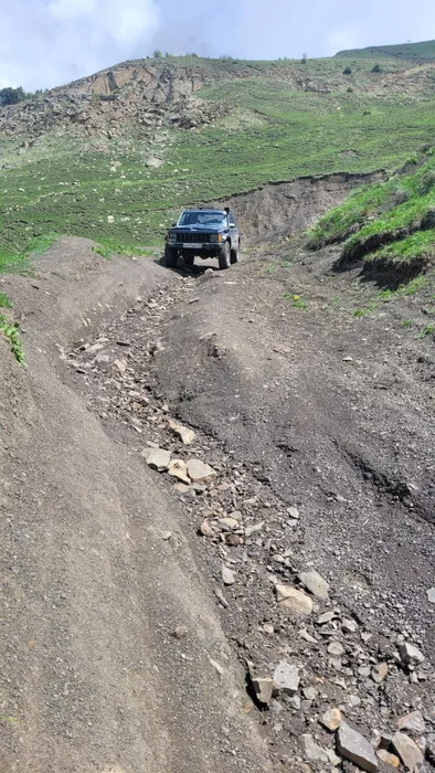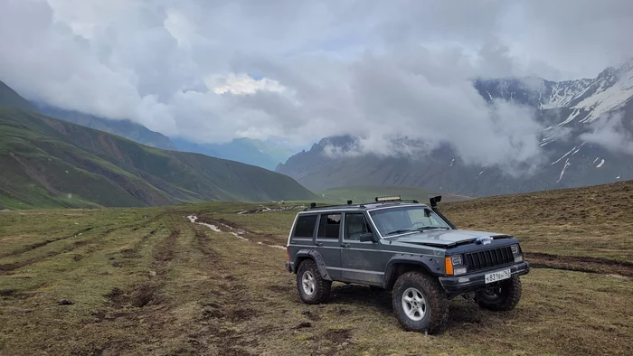 Сам перевал невысокий и несложный, но тут на очередном подъеме щелкнула раздатка, молчавшая до этого всю поездку. Это точно сигнал того, что больше никуда мы не едем. Бездорожье нам противопоказано)