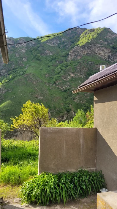 Сколько ехать до альплагеря мы не представляем, хорошо бы переночевать в Безенги, до которого всего пара километров. На удивление у Ромы ловит связь Мегафон и интернет, достаточно быстро он находит какой-то гостевой дом, созванивается с Натальей и все решает. Ключ нам привез какой-то мужик, дома никого, мы одни. куча кроватей, кухня, душ. Что еще нужно? Вся благодать по 1000 руб с человека за сутки.
