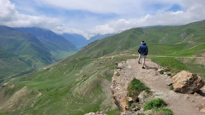 Саму стену видно уже давно, по мере пути вид не сильно изменится, мы просто будем к ней приближаться. Это уникальное место для Кавказа, тут собраны все остальные 5-тысячники кроме известных Эльбруса и Казбека, они технически сложные, восхождение на них уже настоящий технический альпинизм, поэтому туристов тут кратно меньше.