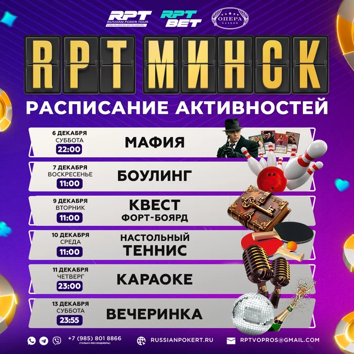 ☄️ Чемпионат по Настольному теннису, Квест приключения, Боулинг и многое другое — ловите полный список развлечений для гостей декабрьского Гранд Финала RPT в Минске!