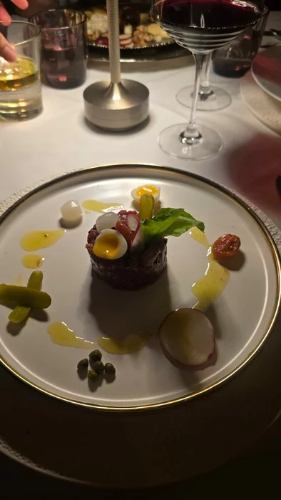 Очередь жены заказывать еду и она в слух призносит " та та та" ,просто как слова паразиты которые ты произносишь пока думаешь. Официант сказал тоже самое и нам показалось что он как будто так вежливо подъебал её, мы все посмеялись и забыли. По итогу через 20 минут приносят тар-тар из говядины(которую жена не ест) и к моему beef wellington добавилась еще порция мяса) Всё супер вкусно, sh0rnyboy не даст соврать :)