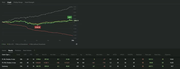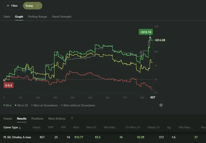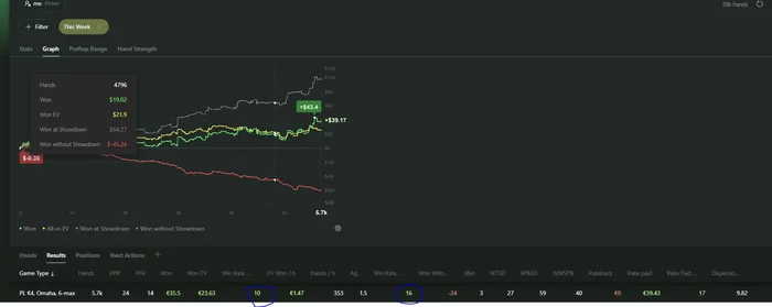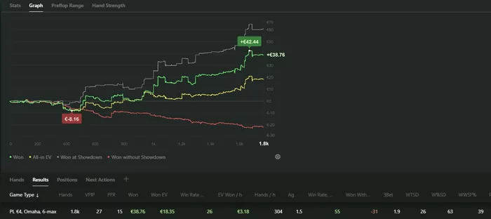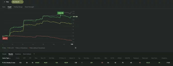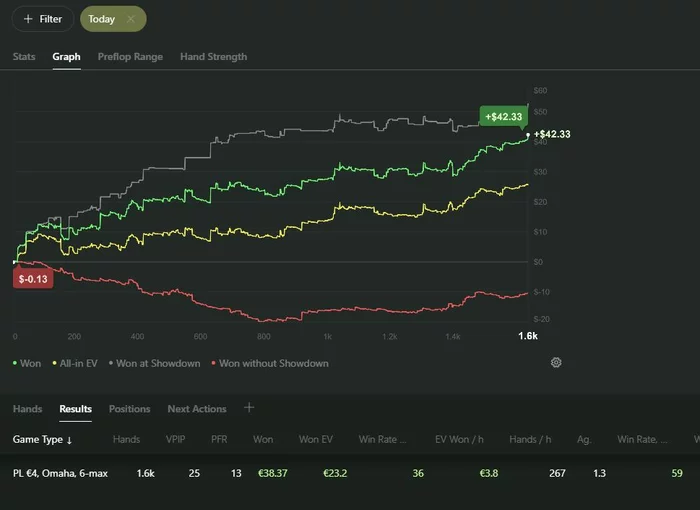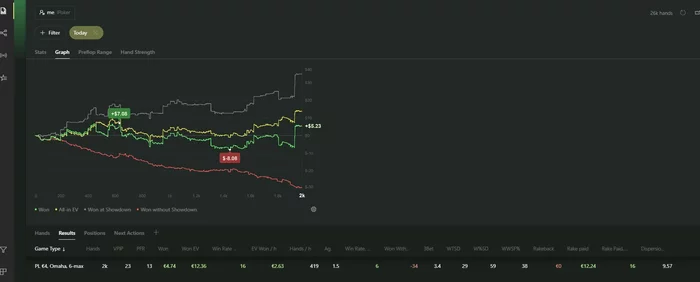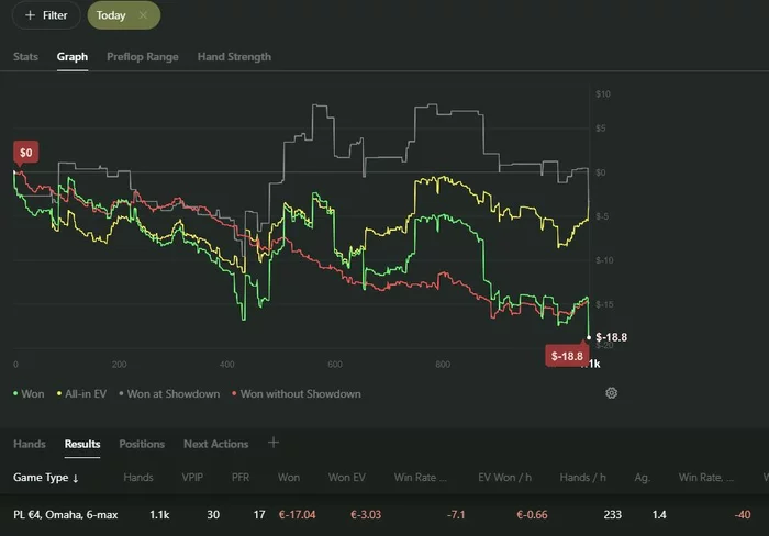 Ну и сегодня что-то совсем слабо получалось что..Блокеры не работали, доски приходили ужасные во всех 3бетпотах, сам опять как говно играл пассивно. В минус этот день, хоть по ев не так уж и плохо вроде..