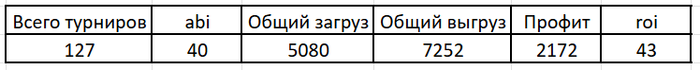 За месяц с начала челленджа был сыгран 381 турнир на АБИ 40$. Полученный профит +1900$. ROI 12%.
