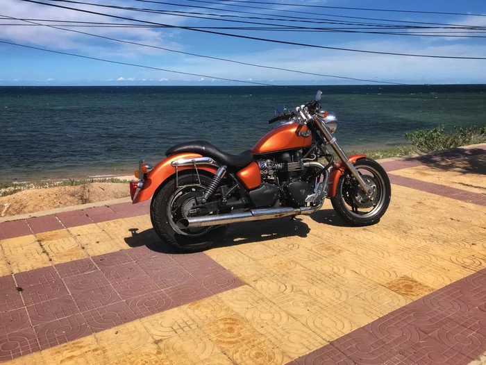 Время шло, мы сняли большой дом на троих с довольно большой парковкой в полуподвале(или цокольном этаже - не знаю, как правильно назвать), где оборудовали небольшую мастерскую, чтобы обслуживать мотоциклы можно было комфортно. Один друг пересел на Харлей, второй был в раздумьях, а я по-прежнему катал на Стиде. И вот, как-то в один из вечеров мы сидели в "кабинете" и пили пиво. Кабинетом у нас называлась небольшая нежилая комната в доме, куда мы поставили компы, холодильник с пивом и телек с плойкой. Там мы периодически проводили время вечерами с видеоиграми и пивом. Так вот, в один из вечеров наш харлеист говорит:"Смотрите, чё нашёл". Мы смотрим к нему в монитор, где открыты объявления в фейсбуке по продаже техники. "Вот, Спидмастер(Triumph Speedmaster 900) за 2700 продают в Дананге". Мы начали смотреть, обсуждать и пришли к выводу, что на вид он какой-то ушатанный да и, скорее всего, за такую цену на левых доках. Нику он понравился, поэтому решили, что вслепую точно брать не стоит - надо смотреть. Мы списались с продавцом, он естественно сказал, что мот "конфэта-пэрсик", приезжайте покупайте. Ну и через пару дней наш харлеист поехал в Дананг смотреть этот Триумф. А ещё через пару дней отправил нам заключение, что типа мот действительно уставший, но "немного подшаманить", вложив баксов 200-300 и будет вообще пушка-гонка, да и вообще за такую цену надо брать и если не зайдёт, то сделаем и перепродадим уже тут, в Нячанге и короче я его уже купил, через неделю грузовиком привезут прям к дому. Про то, как мы его получали, вообще отдельная история. Ни к какому дому нам его не привезли, а по итогу позвонили в первом часу ночи, типа мот привезли, забирайте. Мы проводим оперативную разведку местности у дома и ближайшей дороги и никакого грузовика и мотоцикла не видим. Далее состоялся примерно такой телефонный диалог: