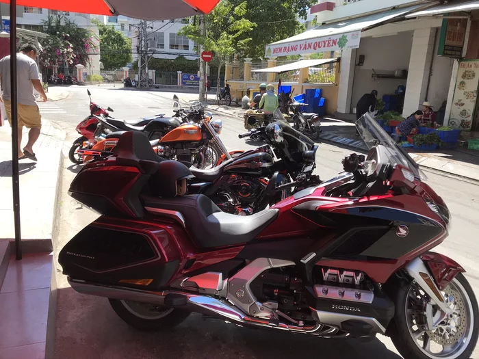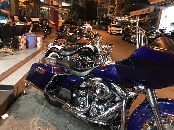 Сам Три был большим энтузиастом мотодвижа и старался активно его развивать. На тот момент у него был какой-то неплохой бизнес с Кореей, поэтому мотоциклов у него было штук десять. Также, он купил небольшое помещение и сделал из него что-то типа мотокофейни. Тут стоить отметить, что большие байки вьетнамцы не используют как средство передвижения - это исключительно хобби. По городу все гоняют на мопедах или тачках, потому что так практичней и удобней, а на больших байках тусуются и катаются между городами по фану. Ну и это место было таким утренним местом тусовки, куда приезжали местные на байках чтобы попить кофе. Ну и иногда собирались вечером, чтобы пива попить.