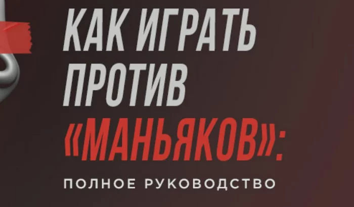 "Будьте готовы к дисперсии Когда у вас за столом есть маньяк, средний размер банка значительно возрастает, и вы часто будете вынуждены играть на большее количество денег с некоторыми маргинальными руками. Также будет случаться и такое, когда у вас будет отличная рука, а маньяк будет рейзить всю дорогу с каким-нибудь мусором и на ривере доезжать в раннер-раннер стрит, флеш или т. п. Стрики, которые вы будете испытывать, когда за столом сидит маньяк, могут быть очень интенсивными, и это отпугивает многих игроков. Когда вы играете с маньяком, вы должны понимать, что вы, скорее всего, проиграете несколько ощутимых банков или даже возможно всю сессию сыграете в минус. Не важно, победите вы данного конкретного маньяка в этой конкретной сессии или нет - важно, чтобы вы принимали правильные решения, которые принесут вам деньги в долгосрочной перспективе против «коллективного маньяка». Не надо «воспитывать» маньяка Если какой-то игрок начинает вдруг «бегать по столу», вы можете захотеть поставить его на место, в его же манере, но это редко будет хорошей идеей. Сильная сторона маньяка в том, что его почти невозможно прочитать. Не пытайтесь переиграть его, делая то же самое, потому что, откровенно говоря, у него это, скорее всего, получится лучше, чем у вас. Вместо этого разберитесь с маньяком через его слабые места. Накажите его лучше, когда у вас будет сильная рука, а не слабая. Он хочет увидеть в вас слабость, так покажите ему эту слабость, сбрасывая карты на его рейзы, а затем нанесите удар, когда у вас будет чем. Заставьте его играть в вашу игру, а не пытайтесь играть в его. Маньяков можно побеждать и это довольно просто делать, если знать как. и правильное отношение к ним - это уже первый шаг."