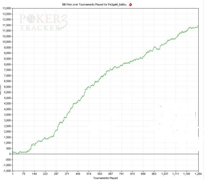Без ИТМ мой рекорд около 40 турниров, у меня другая проблема, не люблю ими правда делиться, но это зашло уже как-то далеко...И может кто-нибудь здесь даст совет дельный. Проблема с финальным столом, уже почти как полгода наверное, давольно-таки часто выхожу на фин стол. на Передфиналки гашу всех на раз-два, на финалке всё! Один хороший недоезд и всё я постепенно растворяюсь в месте так 6-7-8-9. Как только не пробывал, играть финалку, тайт, агр. Результат один и тот же никак не могу добраться до главной монеты... Как будто климо стоит на мне. Один раз зашёл ко мне праздник когда на 340 тел, занял 3 место для меня это был серъезный прогресс)) финалок было достаточно много. Забыл сказать играю 180 90 45 тел + 2-3 МТТ с киллополем + какая нибудь лабуда на тел так 300-400