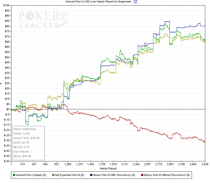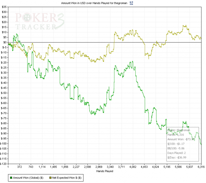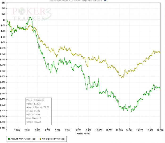 статы не менял, 14/12 3бет 4.95 (очковать стал больше) зато в трибет потах стал больше конбетить и это приносит плоды, что радует...чек\рейз тоже радовать стал, раньше с этим приемом не особо дружил, щас поближе познакомились )))) ну а в общем, конечно, это п_и_з_д_%_ц какойта.....