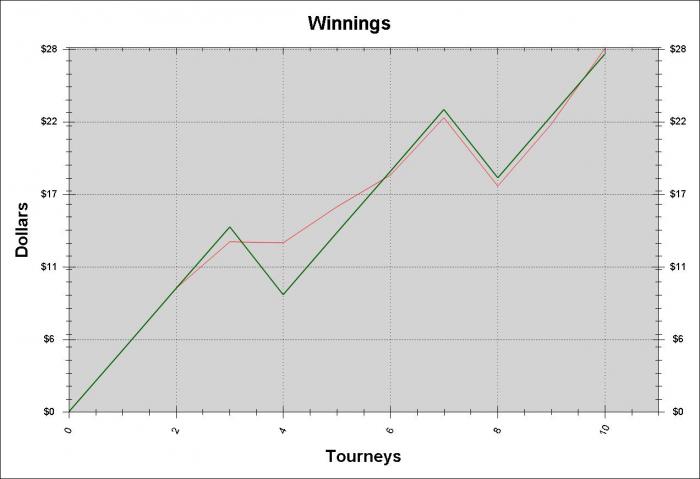 Итак банкролл 54$. Цели до конца месяца: 1 сыграть как минимум 150 турниров 5,25$ c ROI 5% 2 при спуске ниже 20$ переход на shootout 2.15$ 3 не ползать на лимиты выше (даже 10)!!!! 4 не ползать на лимиты выше!!! 5 вообще не ползать на лимиты выше!!!