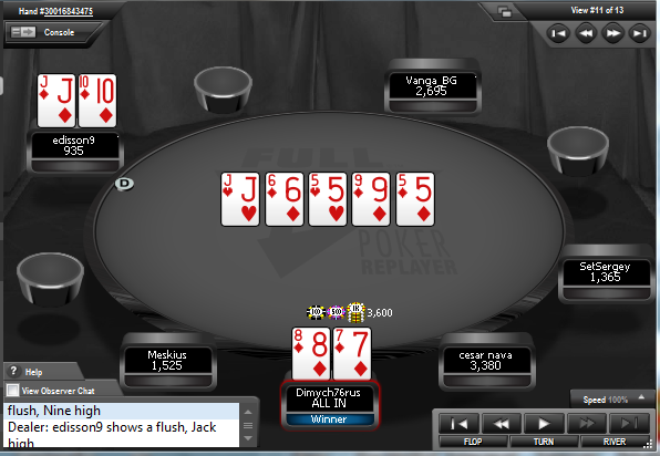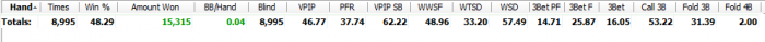 Выходные прошли с переменным успехом (( Суббота прошла хорошо, а вот в воскресенье минус 8 БИ... Причем отдавался в как посмотрел много странных раздач где должен был находить кнопку фолд но почему то не нашел (((