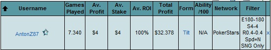 На деле на дистанции в 300 турниров это будет процентов 70 (это еще много)
