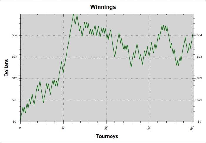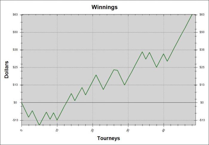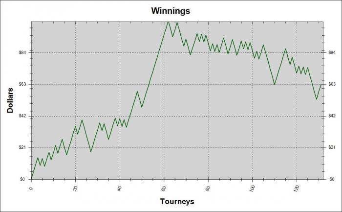 Радостный от того, что наконец то вылечил зуб я естественно вчера напился. Мтт играть не стал и начал масс гриндить свои регулярные ХА. Сказать, что я играл плохо - это ничего не сказть. Играл я отвратительно, играл как полный мудак, переняв стиль своих соперников творил полную куйню. Не нужные колдауны, минусовые 4 бет пуши, только одному мне понятные блефы. Короче считаю что по качеству одна из самых плохих сессий. Да и по ощущениям даже при такой мудацкой игре ездили по мне очень прилично. Монетки воообще не тащились, 80-20 я тоже не тащил ни фига. Так что результат закономерен. Сегодня полный сил и будучи абсолютно трезвым (слегка похмелье, но это не беда) буду показывать свою А игру. А это график можно сказать за два дня на регулярных.