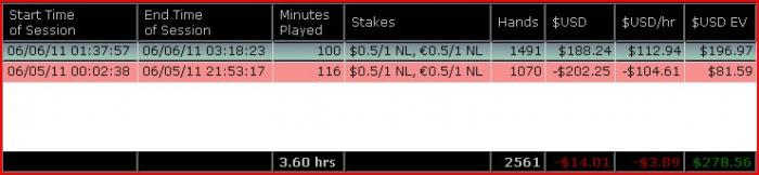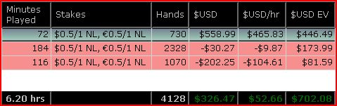 Сессия намечалась быть веселой... спустя чуть больше 100 рук было проиграно более 500 долларов, но видя, что уровень игры настолько низок, что даже в полутильтовом состоянии я могу обыгрывать это поле я продолжил...Сейчас думаю, не самое лучшее решение.
