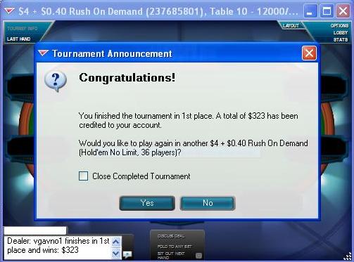 веселый турнир щас был, взял 2е место, +74$ ... и еще один акк довел до среднего ИТМ.