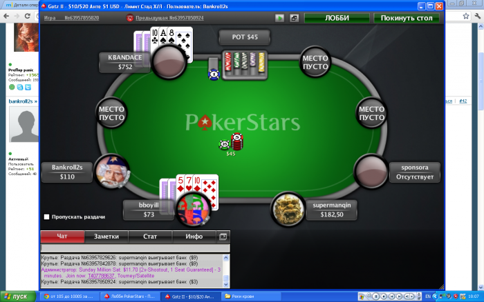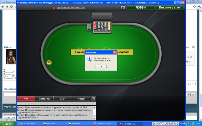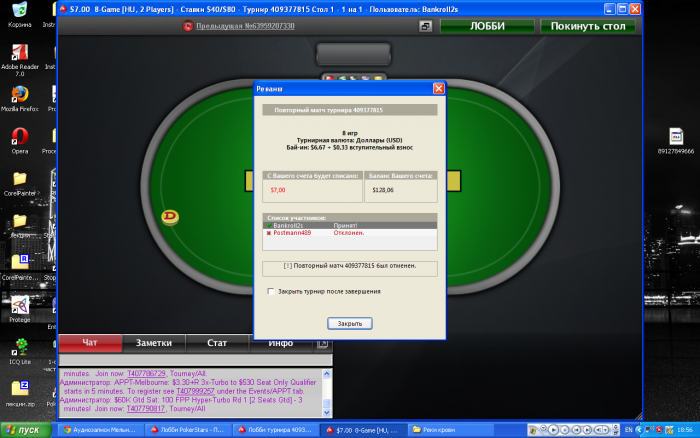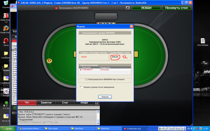 вот сейчас сидят 8 игр Ха ожидают два игрока s0_sikk на 15 это просто мегафиш- не знаю как он еще н залил банкролл(просто глупый олень, у него на аватарке олень) и за зо s backflip91 этот игрок получше но он абсолютно не понимает теорию ОМАХА 8 РАЗЗ СТАД8 т.е.в принципе я могу к ним подсесть но чего то как то после узбека боязно сыграю пока за три пятьдесят- прокачаю везение а потом повыше. что касается Ха то как только поднимусь до 180 буду играть ХОРСЕ за 30 долларов- для 8 игр максимум 15!